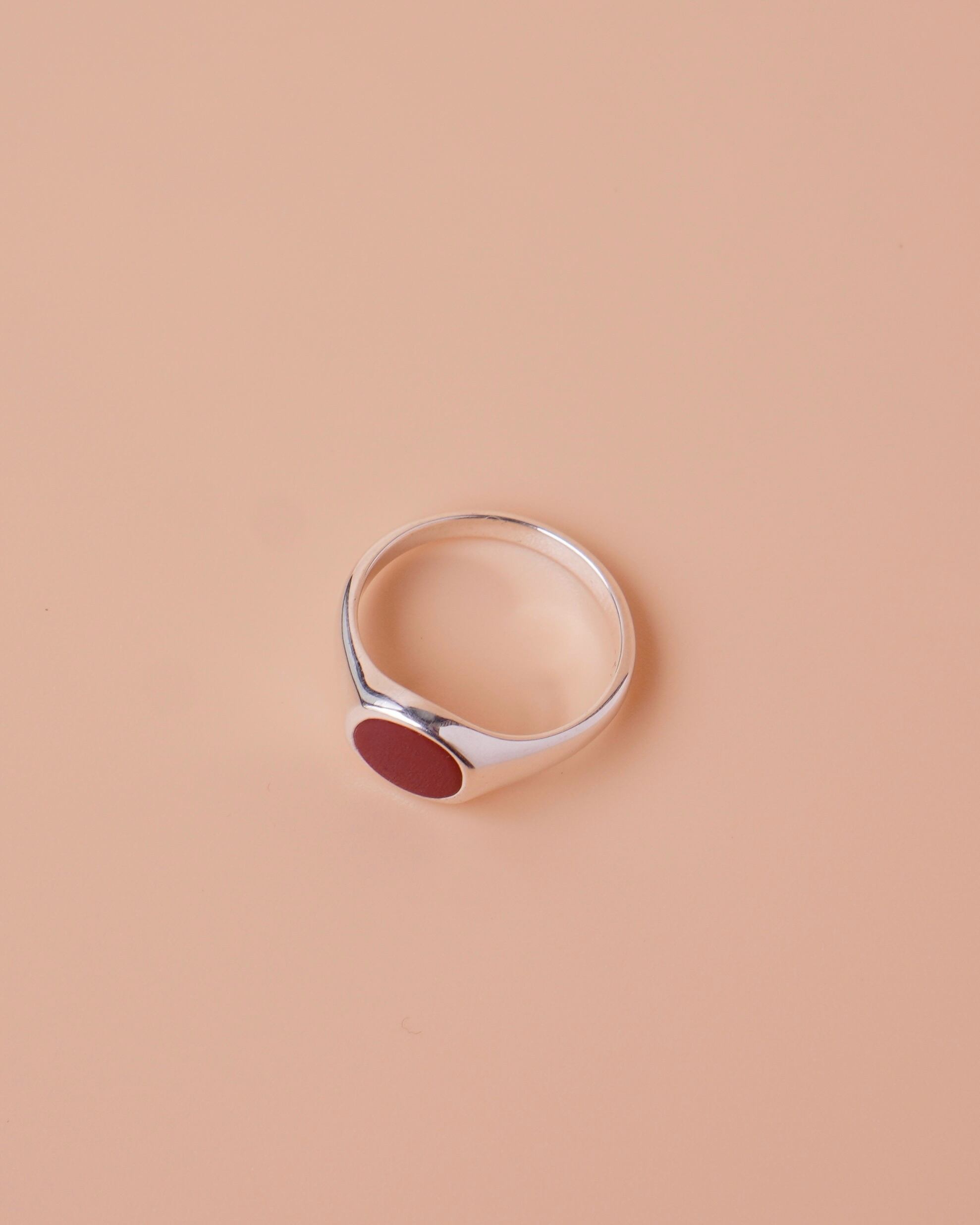 艶やかなオレンジブラウンが魅力のカーネリアンをセットした、クラシカルな雰囲気のシグネットリング。